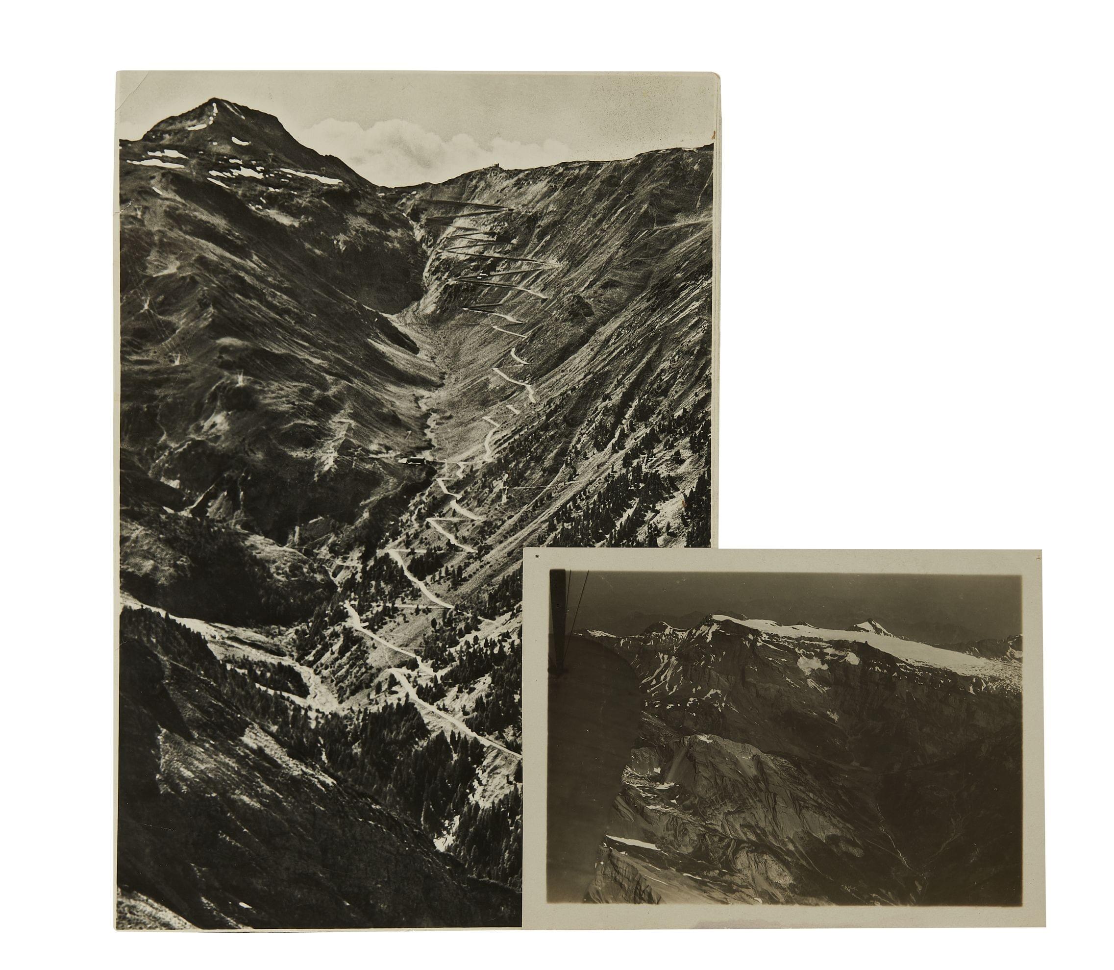 Massif des Diablerets, photographie aérienne, 13x18 cm, On joint une photo du Col du Stelvio, 20x29 cm.