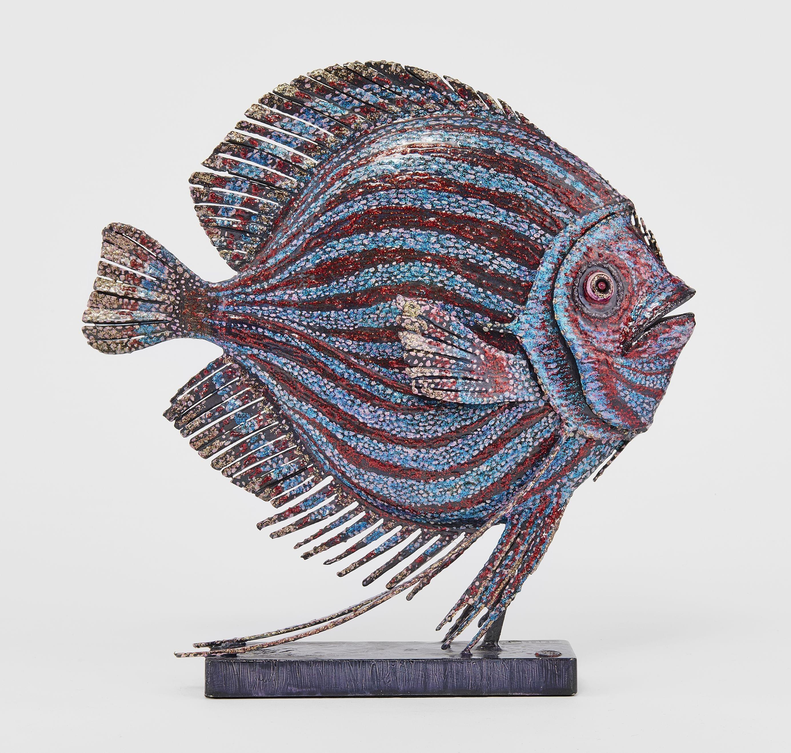 Orphée, métal émaillé, signé et daté 90, H 40 cm