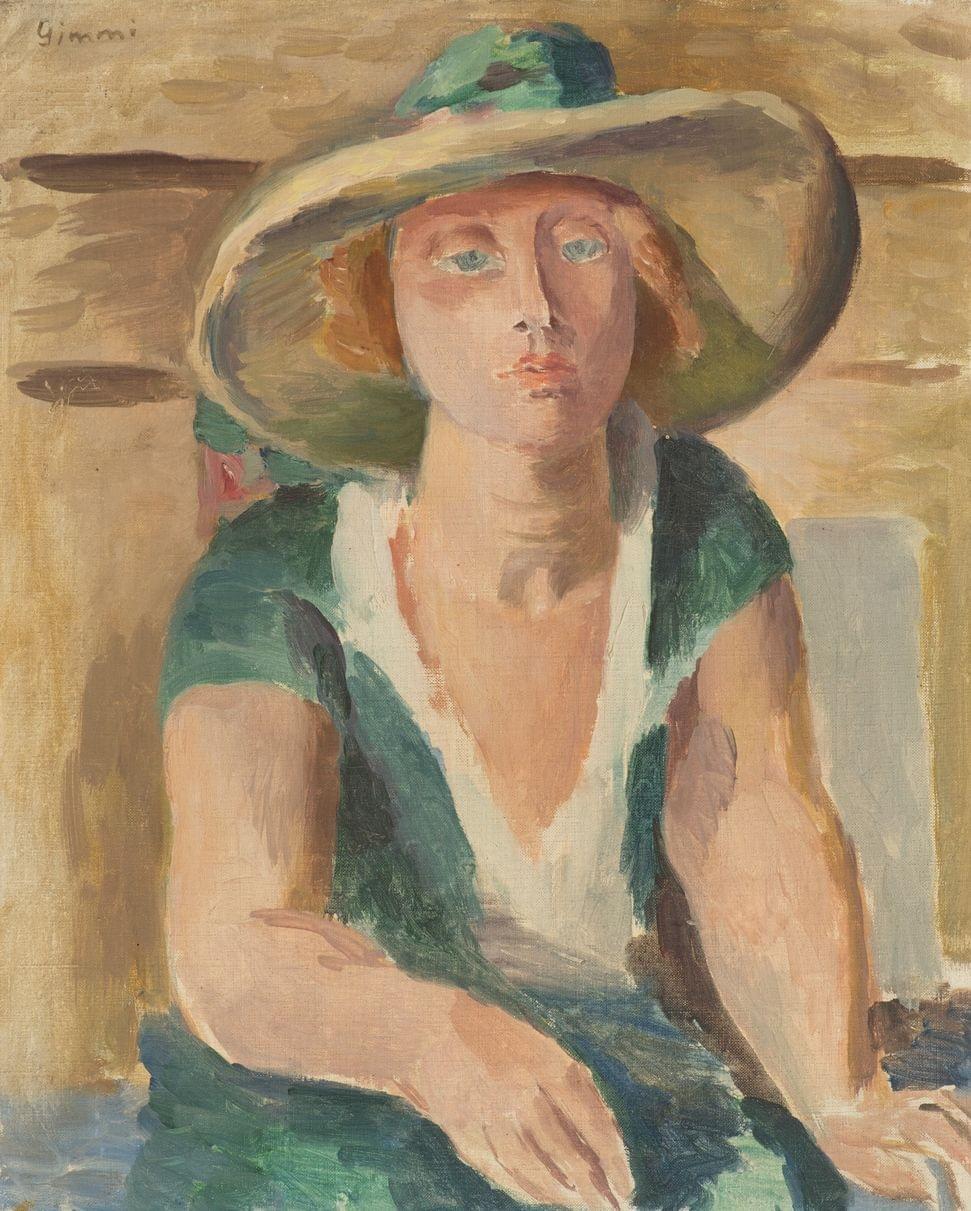 Femme au chapeau de paille, huile sur toile, signée, 41 x 32 cm