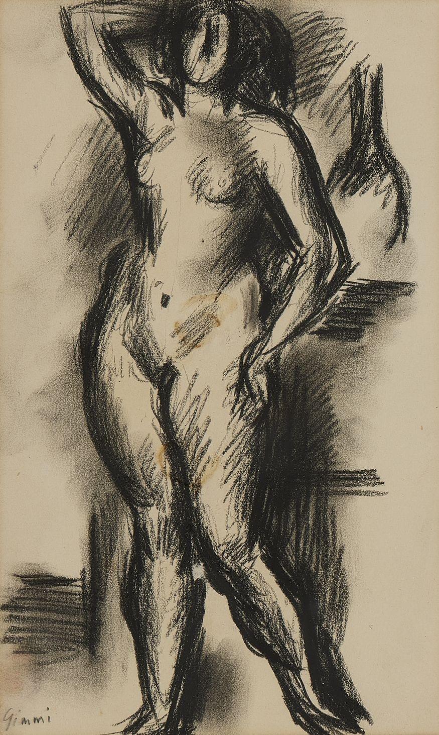 Nu féminin, crayon gras, signé, 21x12,5 cm