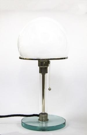 Lampe modèle "Bahaus W24", verre et métal chromé, H 36 cm