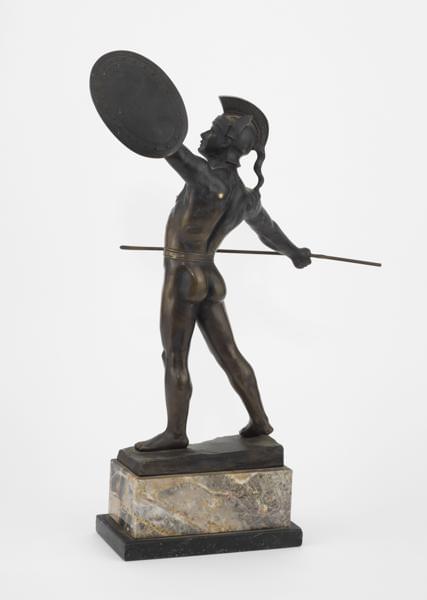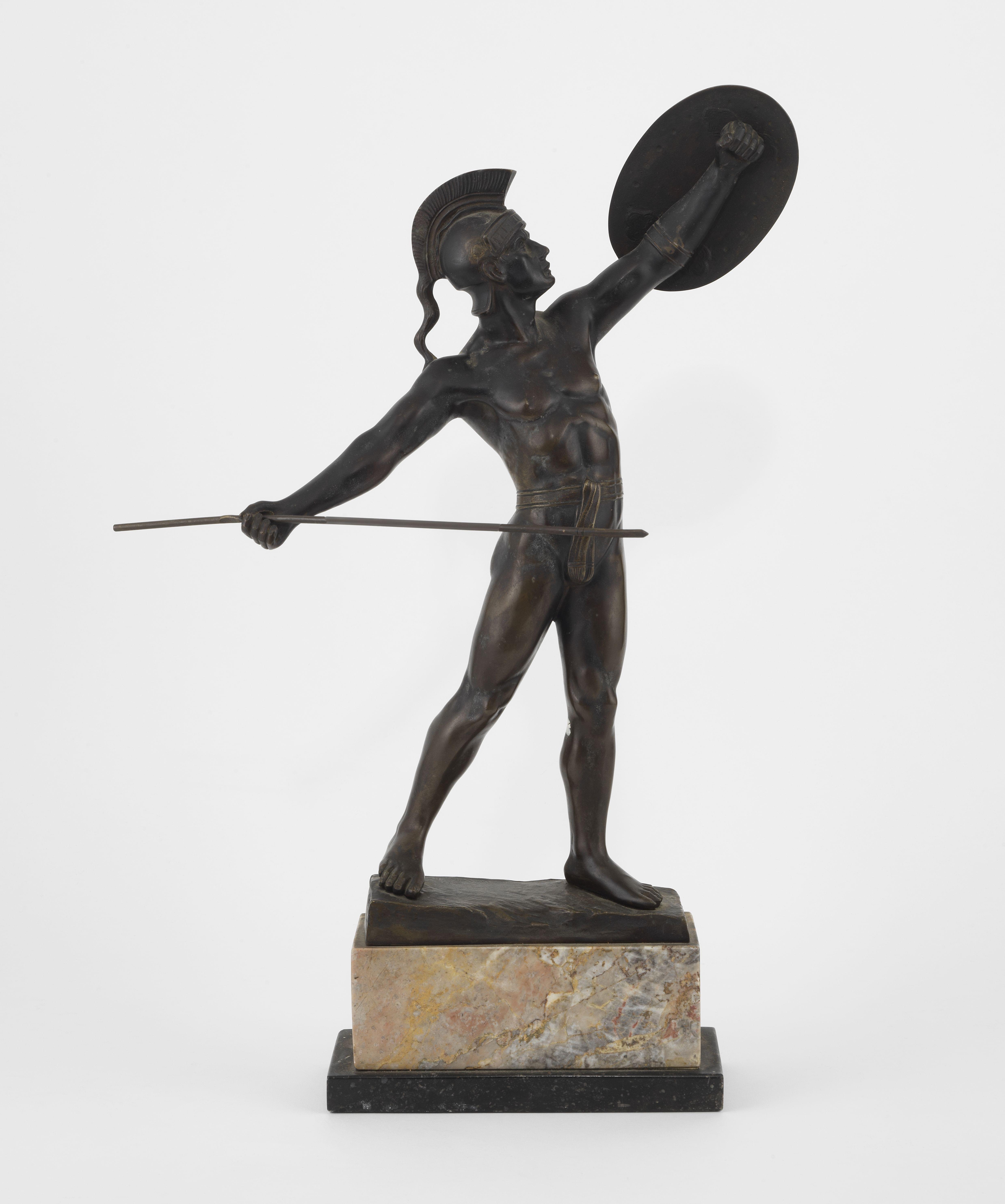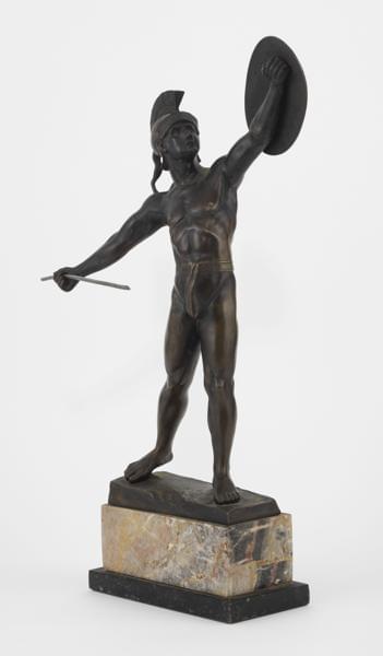 Soldat romain, bronze à patine noire, socle en marbre pêche, H 38 cm