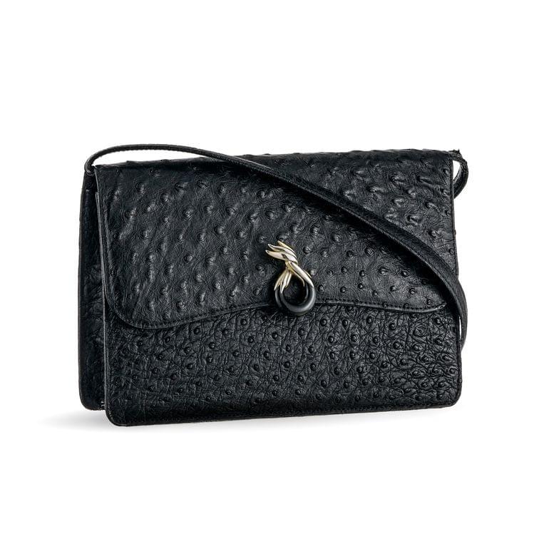 Autruche noir, bandoulière, fermoir en laiton doré et argenté et résine, 16x24 cm