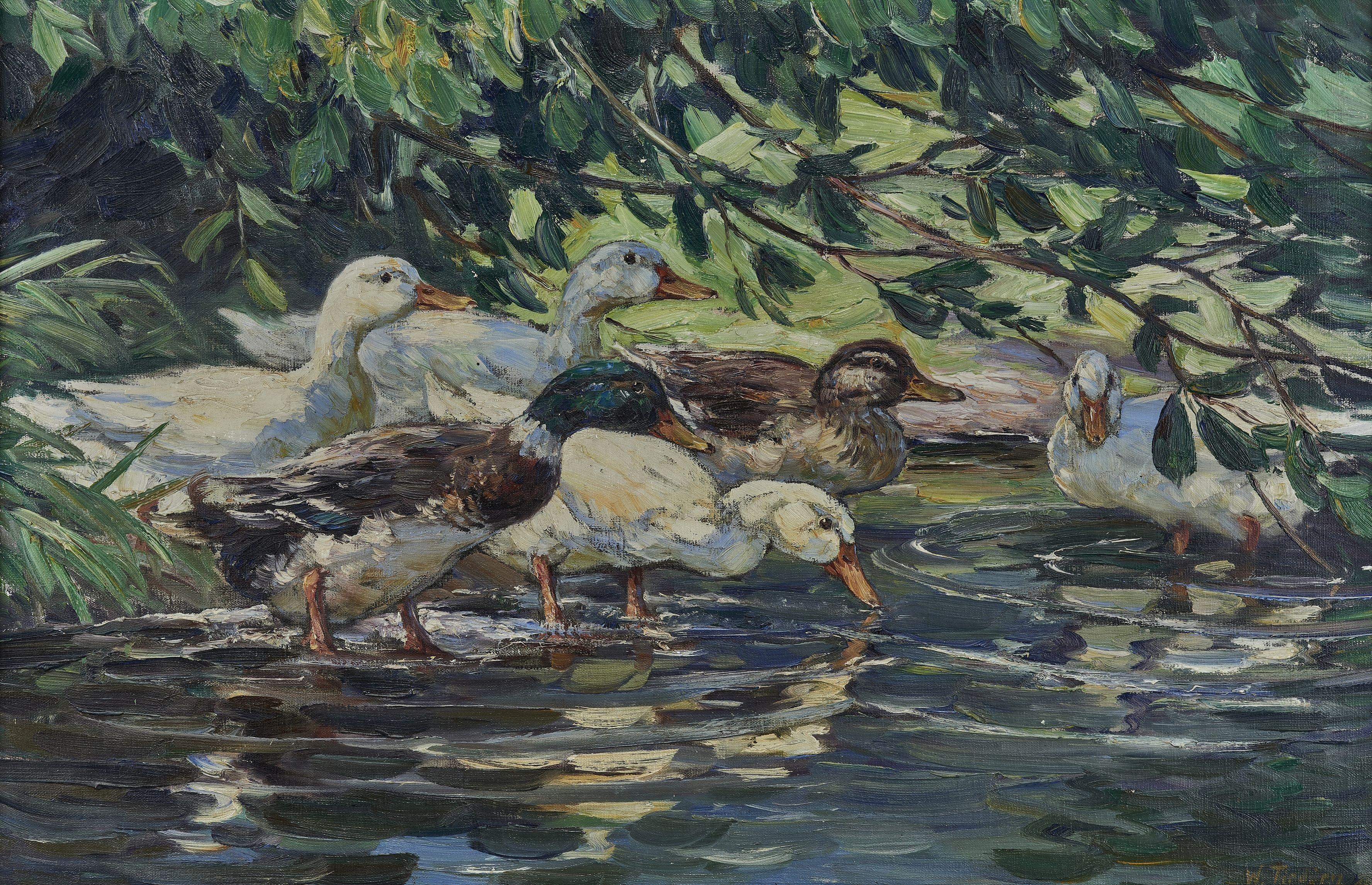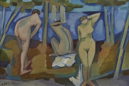 Composition aux trois baigneuses, huile sur toile, signée, 49x72...