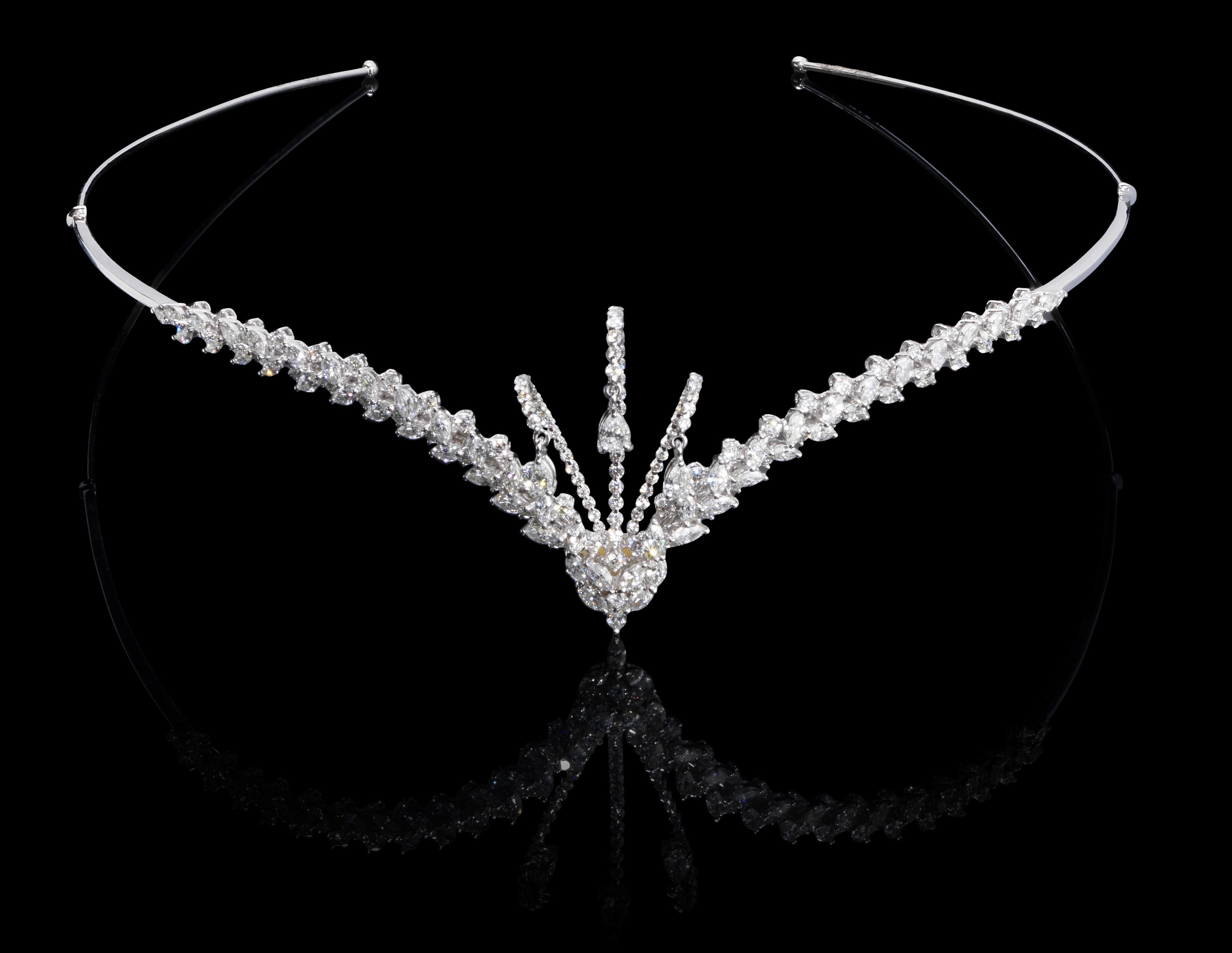 210. Yeprem, diadème retenant en pampille trois diamants taille poire (env. 0,7 ct) et pavé de diamants taille marquise et brillant