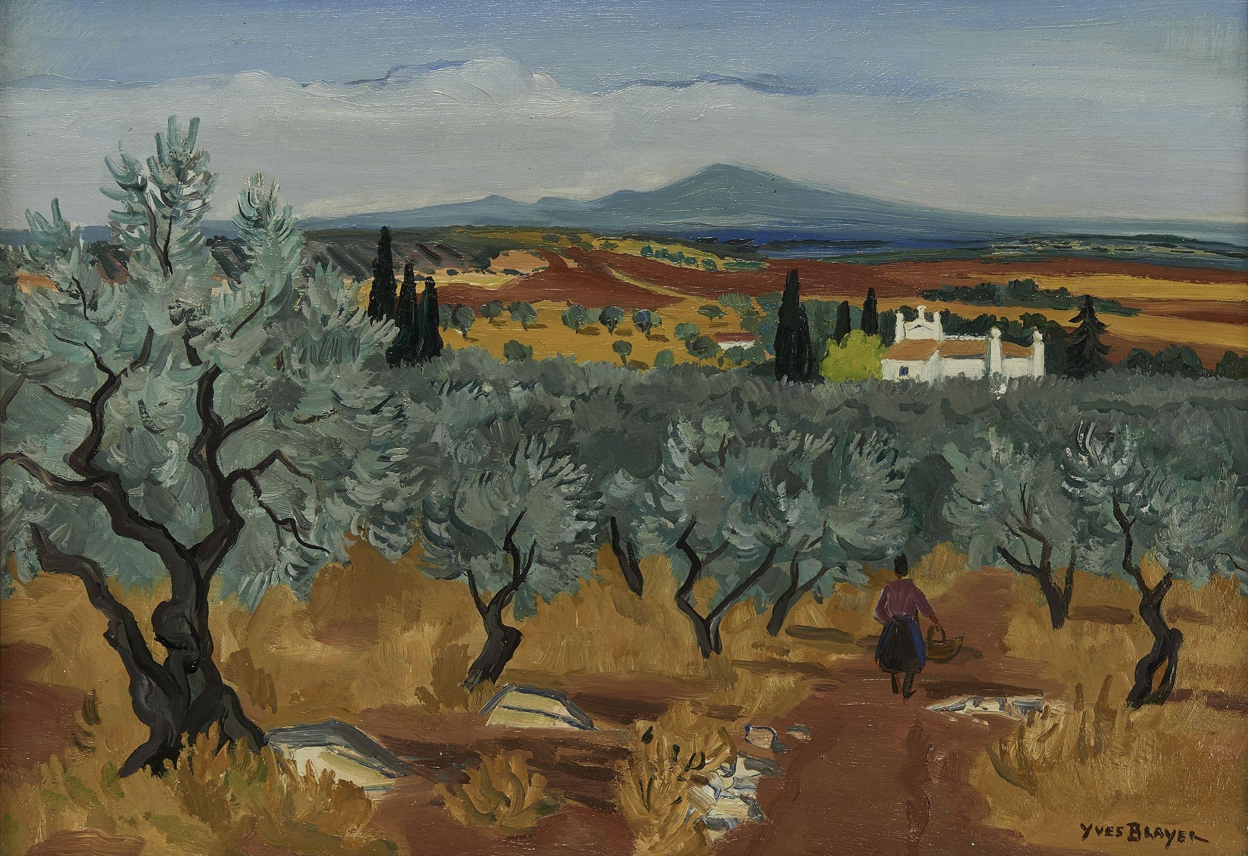 Paysage de Provence, aquarelle sur papier, signée, 47x61 cm