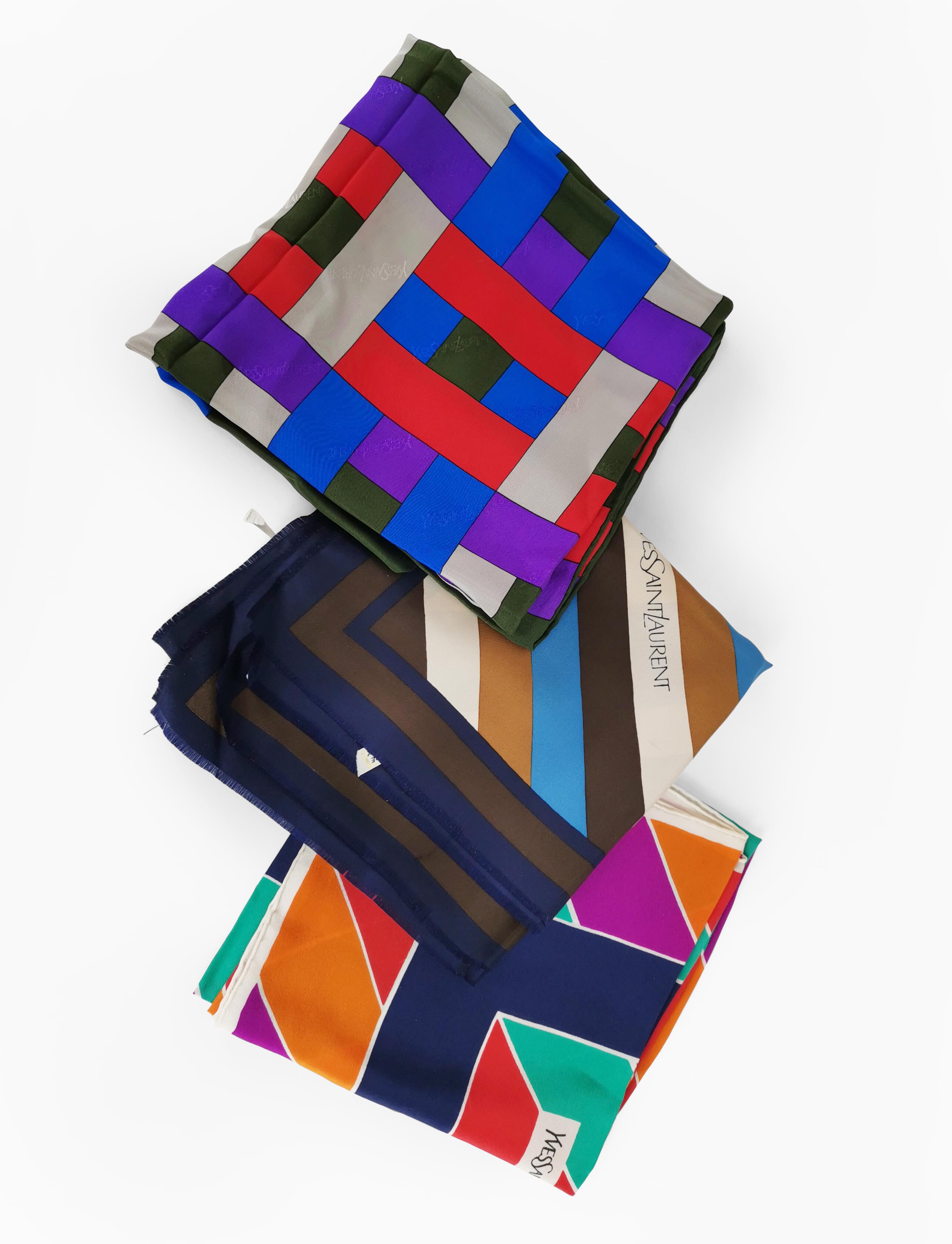 A décor stylisés multicolores, soie, 88x88 cm. Provenance : collection Marisa Perret-Rezzonico