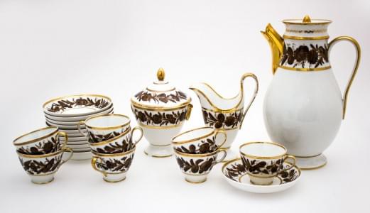 3215. Service à café en porcelaine de Paris à décor or et chocolat de...