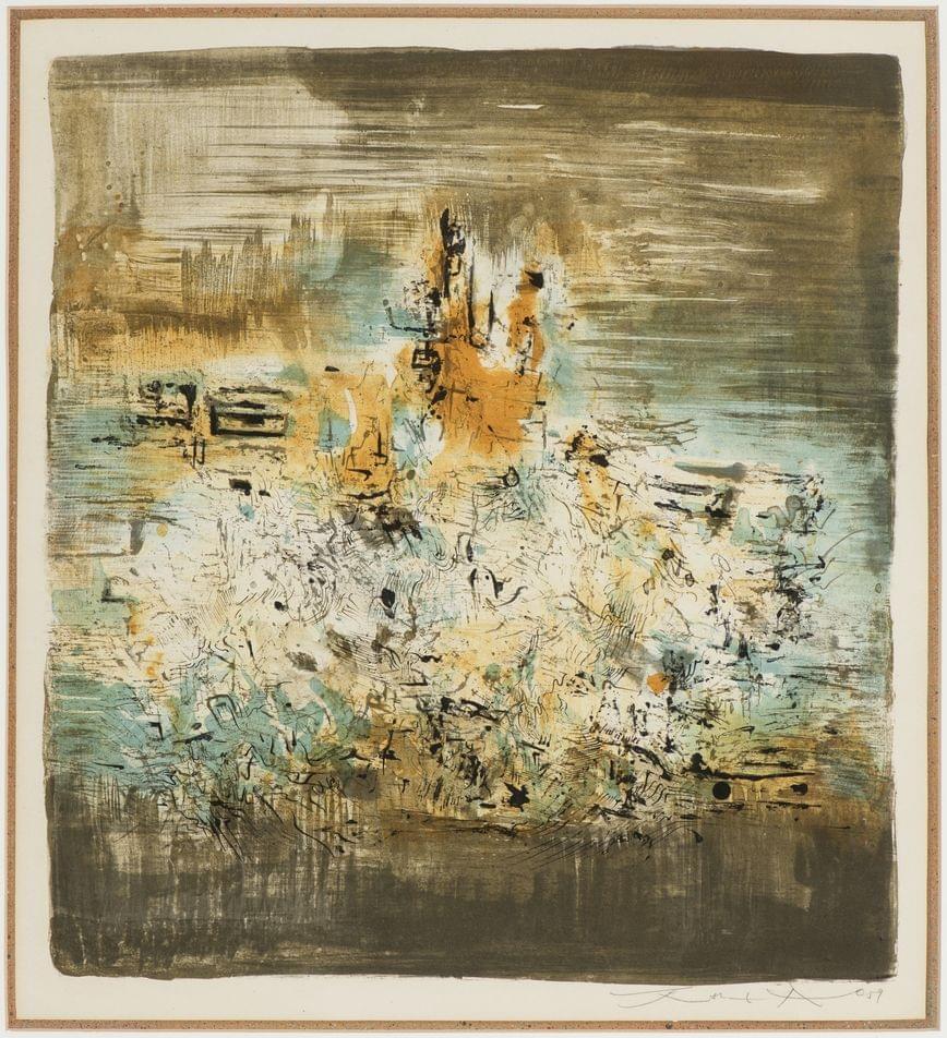 Composition abstraite, lithographie, signée et datée 59, 55x60 cm