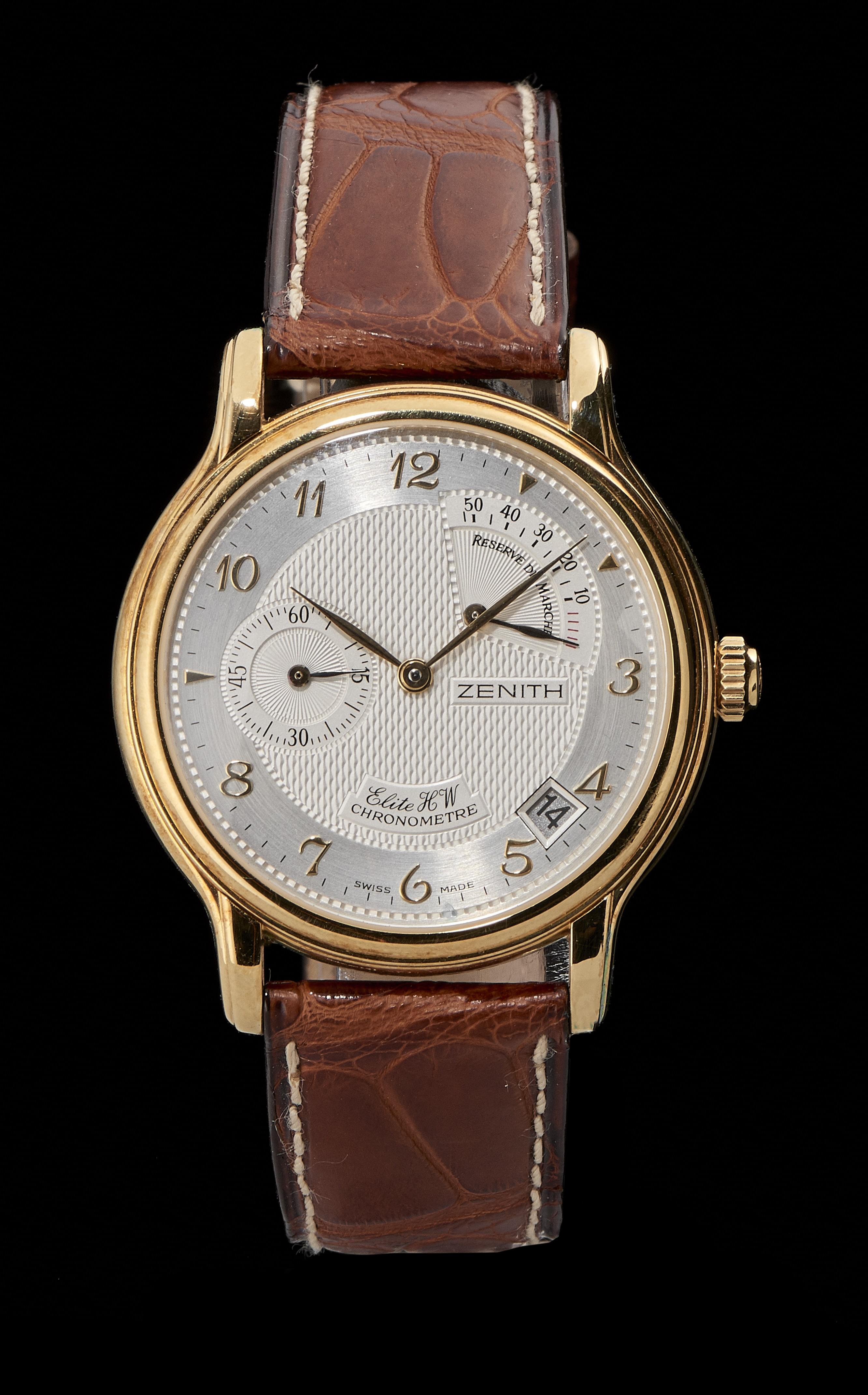 Cadran argenté guilloché, chiffres arabes et aiguilles dorés, date à guichet entre 4 et 5h, réserve de marche 50h, secondes à 9h, or 750, D 36 mm
