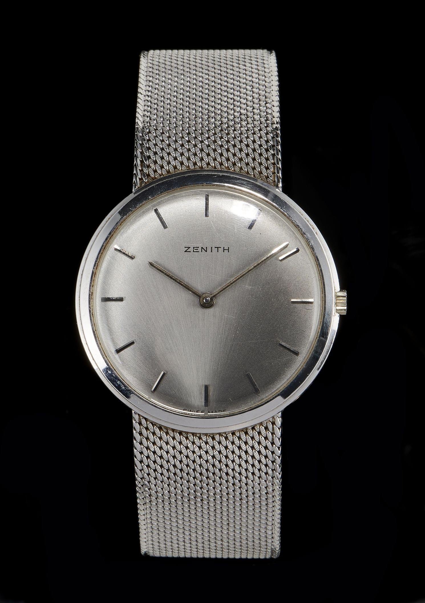 Cadran gris, aiguilles et index bâtons argentés, or gris 750, D 32 mm, poids brut 70 g