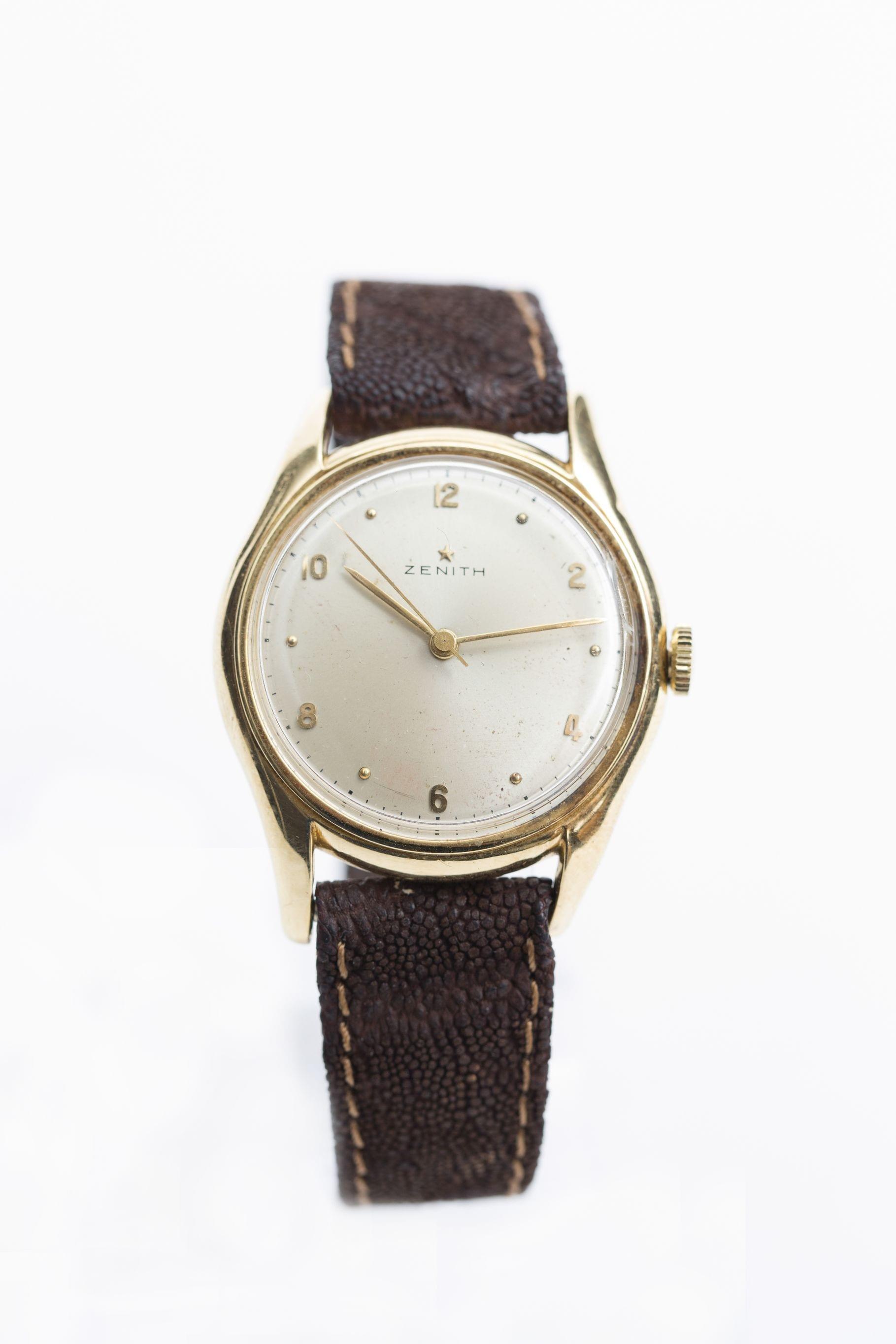 Cadran argenté, chiffres arabes et aiguilles dorés, années 60, or 750, D 33 mm, poids brut 35 g, dans un écrin