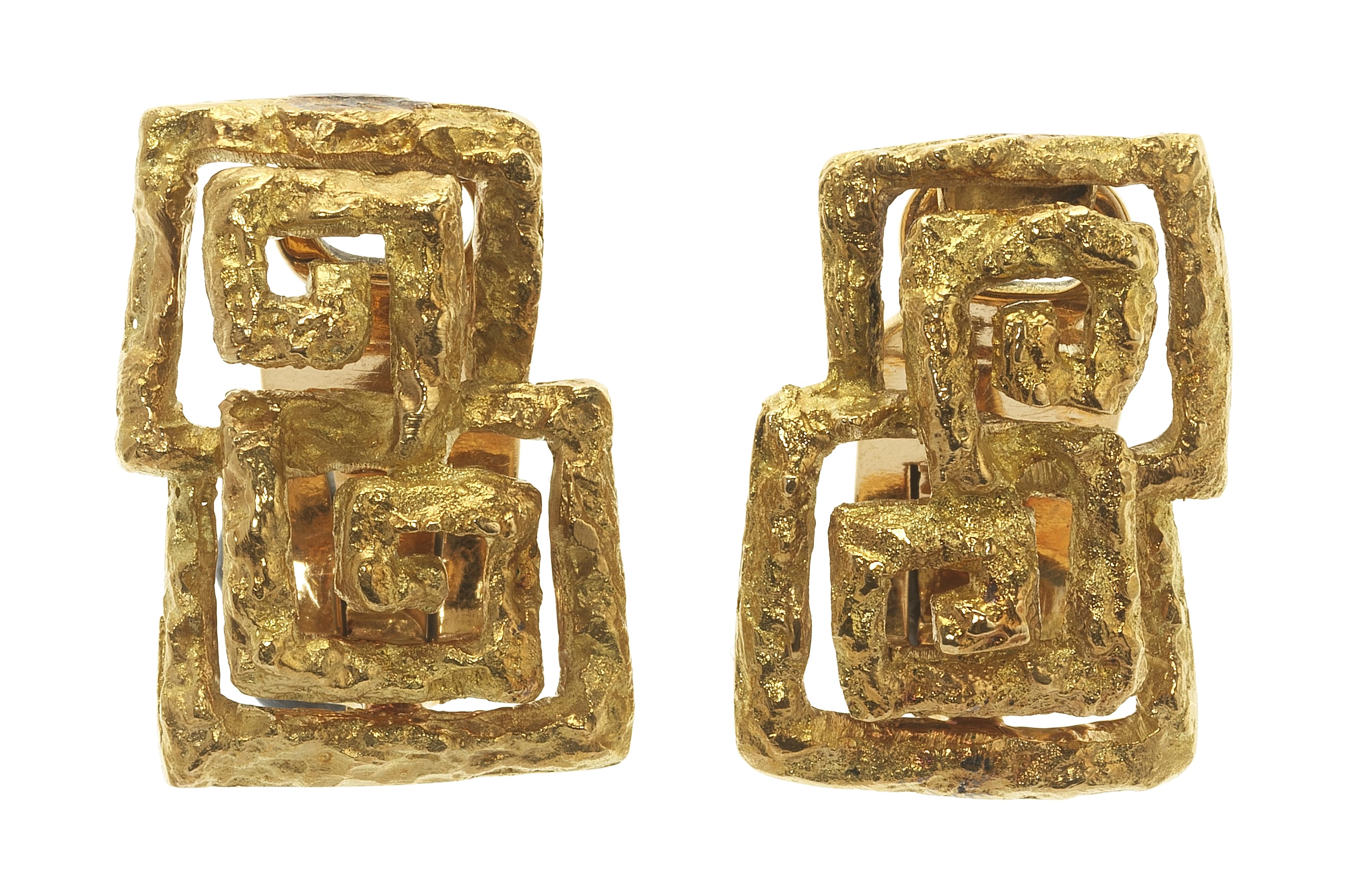 3420. Zolotas, clips d'oreilles à motifs de grecques ajourées et stylisées