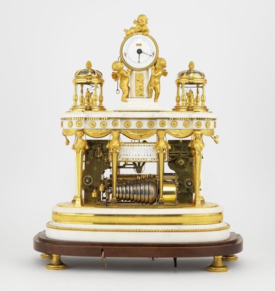 Pendule à musique d'époque Louis XVI en marbre bla...