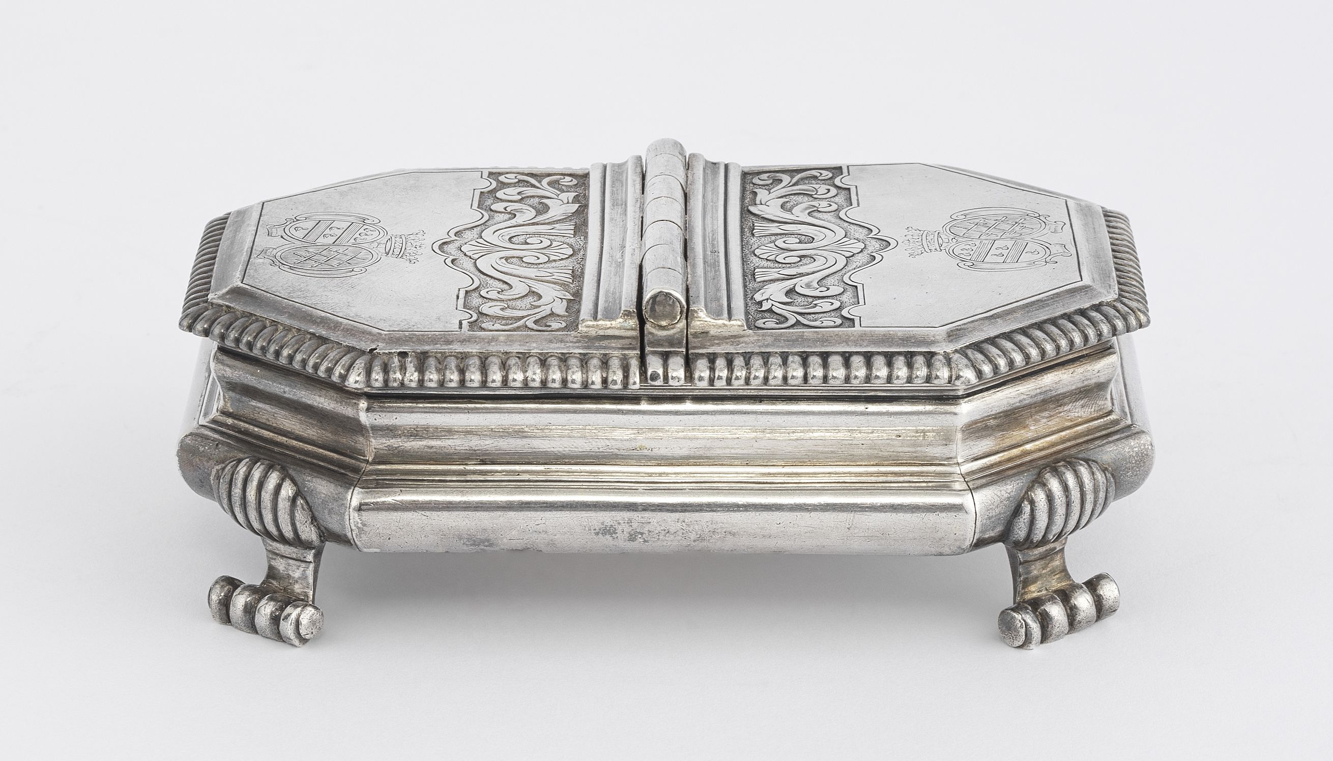 Boîte à épices d'époque Régence gravée d'armoiries...