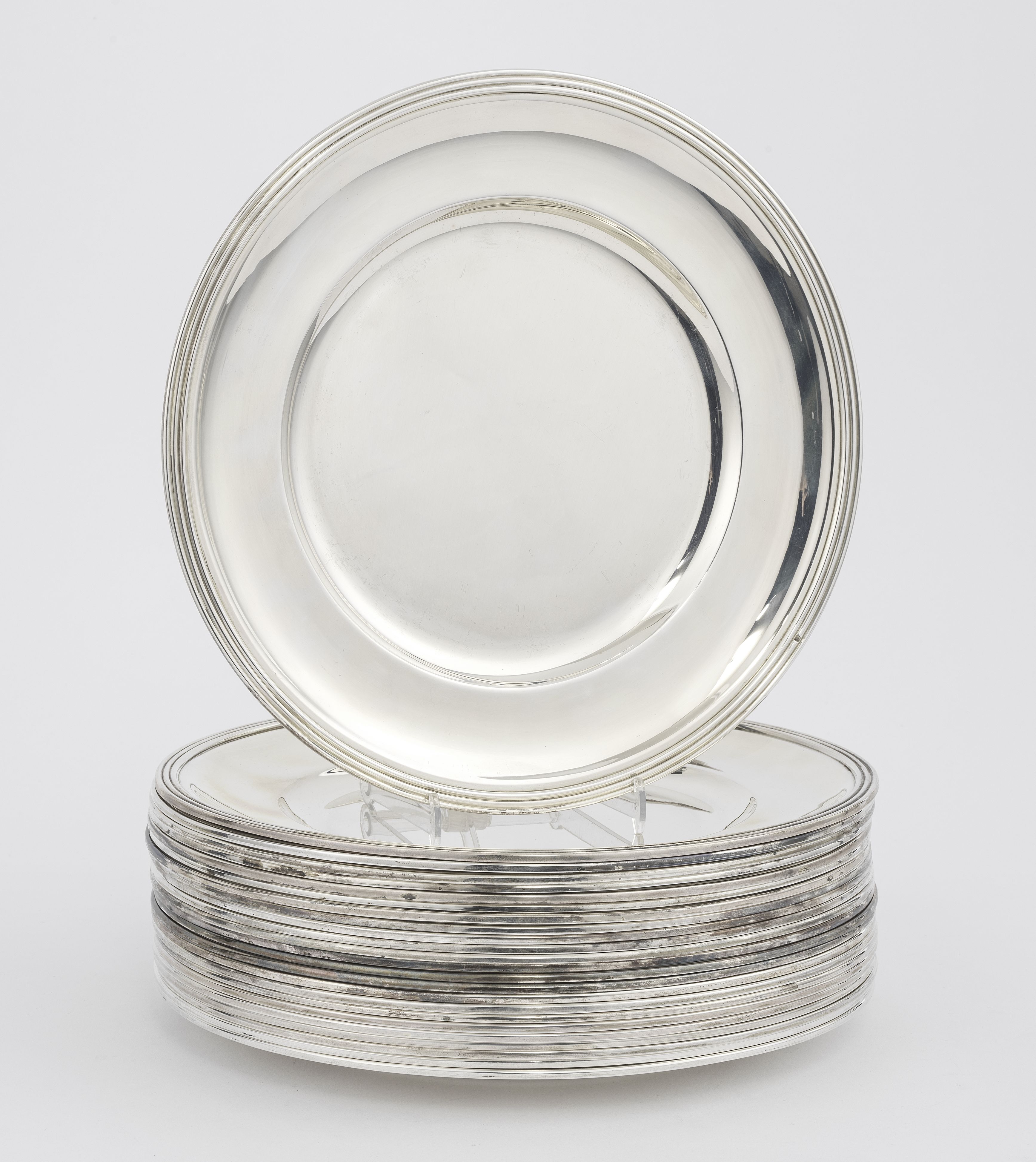 Suite de 24 assiettes de présentation à bordure tr...