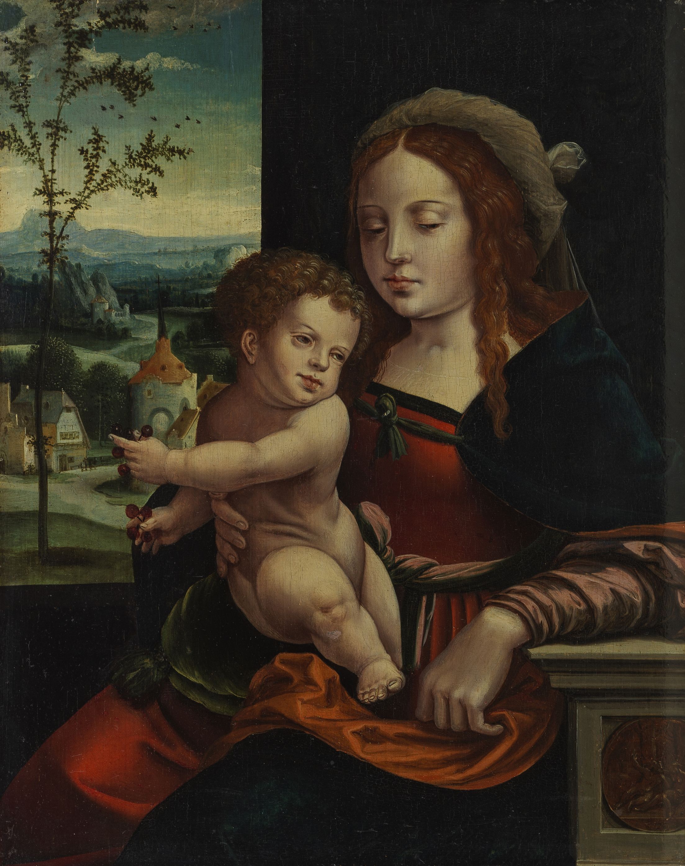Tondo figurant la Vierge à l'Enfant et Saint Jean,...