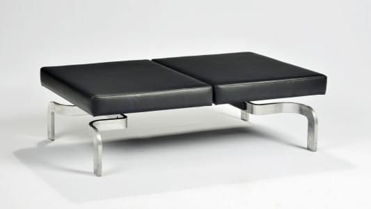 Banquette créée pour l'aéroport de Genève, 1969, cuir noir, méta...