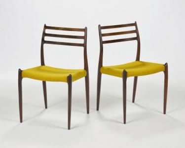 Paire de chaises, palissandre, garnies d'un tissu moutarde, past...