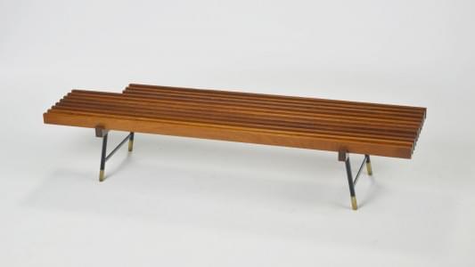 Banquette, noyer, métal laqué et laiton, circa 1950, 31x157x46 c...