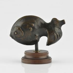 Poisson, bronze patiné sur socle en bois, signé, L 8 cm