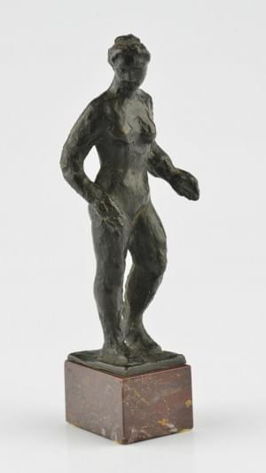 Nu féminin debout, bronze patine noire, monogrammé, socle en mar...