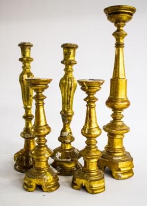 Bois sculpté, peint et doré, Italie, XVIIIe s, H 46, 50 et 51 cm
