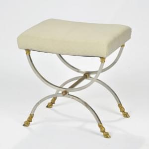Bois laqué crème, tissu bleu
