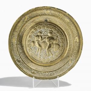 936. Deux plats ronds à décor de cavaliers et personnages, Iran