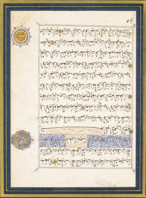 Encre et or sur papier, reliure à volet en cuir gaufré et doré a...