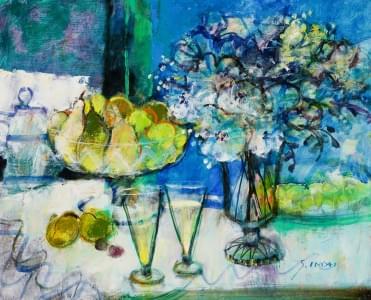 Nature morte aux poires, huile sur toile, 49x60 cm