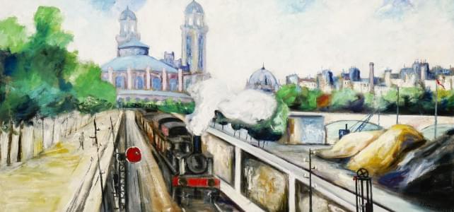 Gare du Trocadéro, huile sur toile, signée, 55x115 cm