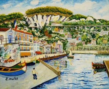 Vue sur le port, huile sur toile, signée, 50x73 cm