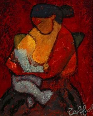 Maternité, huile sur toile, signée, 26x21 cm