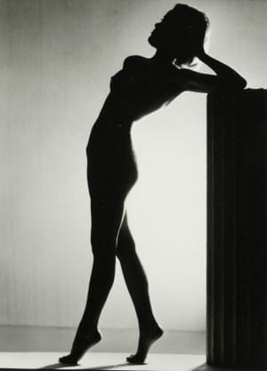 Jeune femme nue à contre-jour, tirage argentique en noir et blan...