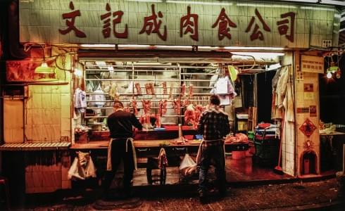 Boucherie à Hong Kong, tirage en couleurs, 55x90 cm