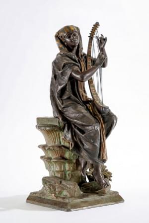 Egyptienne à la lyre, alliage cuivreux peint à froid, H 50 cm