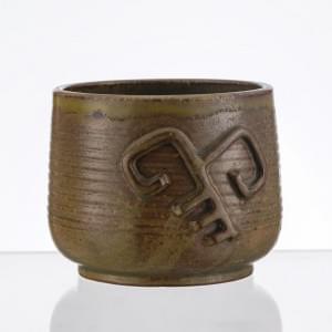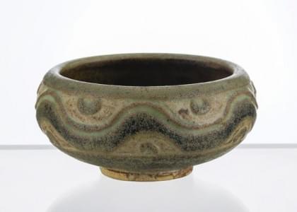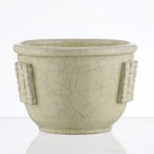 Cache-pot à décor de médaillons en relief, céramique émaillée iv...