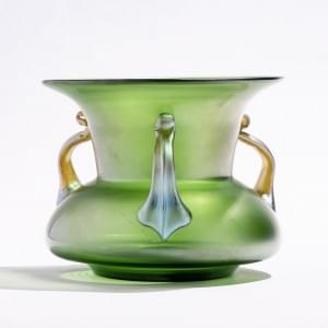 Verre opaque blanc et verre craquelé jaune, anses appliquées à d...