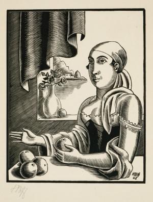 La marchande d'oranges, bois gravé, signé et daté 1928 dans la p...