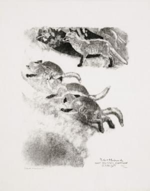 Renardeaux, Nant des Crues, Cartigny, 12 juin 1971, bois gravé,...