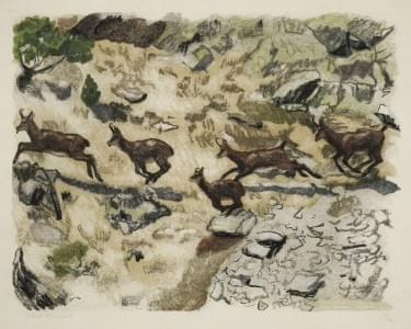 Bouquetins, Val Rosegg, 29 avril 1944, bois gravé, signé et numé...