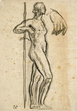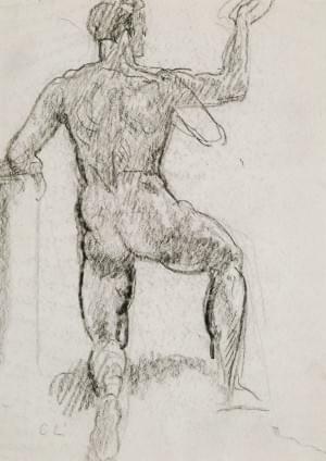 Étude d'homme de dos, fusain sur papier, monogrammé, 27x19,5 cm