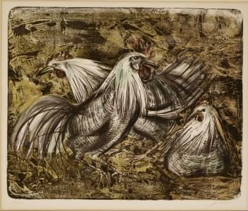 Les coqs, lithographie, signée et numérotée 144/200, 52x62 cm