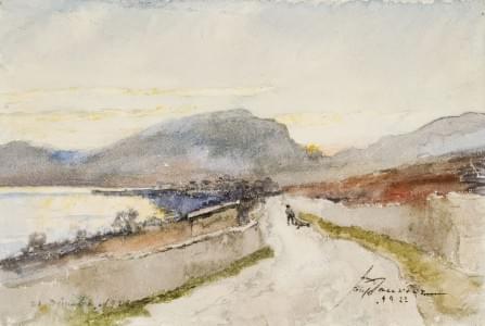 Le chemin au bord du lac, aquarelle sur papier, 17,5x27,5 cm