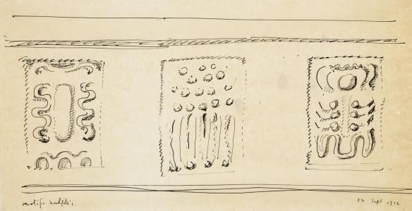 Motifs sculptés, encre sur papier, datée 24 septembre 1912, 23x1...