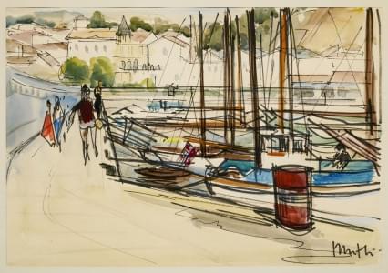 Le port, aquarelle sur papier, signée, 33x47,5 cm