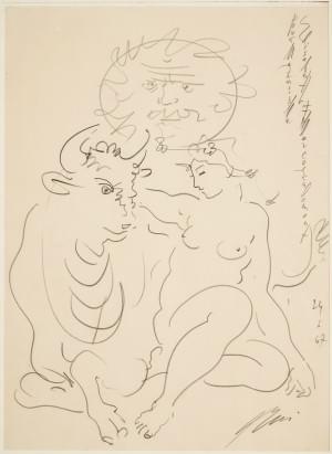 L'enlèvement d'Europe, mine de plomb sur papier, signée et dédic...