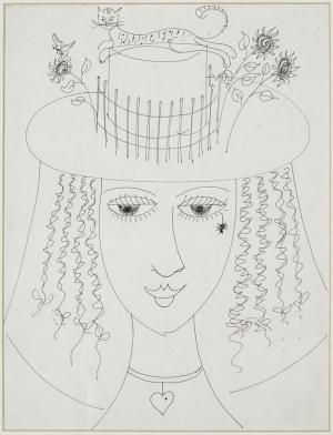 Chapeau fleuri, dessin encre sur papier, 35x26,5 cm