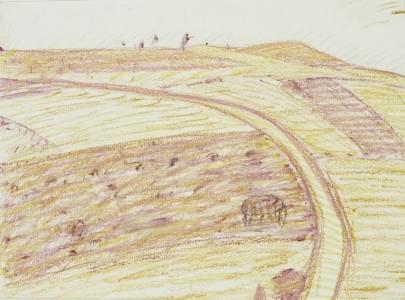 Paysage à la route, pastel sur papier, 22x30 cm
